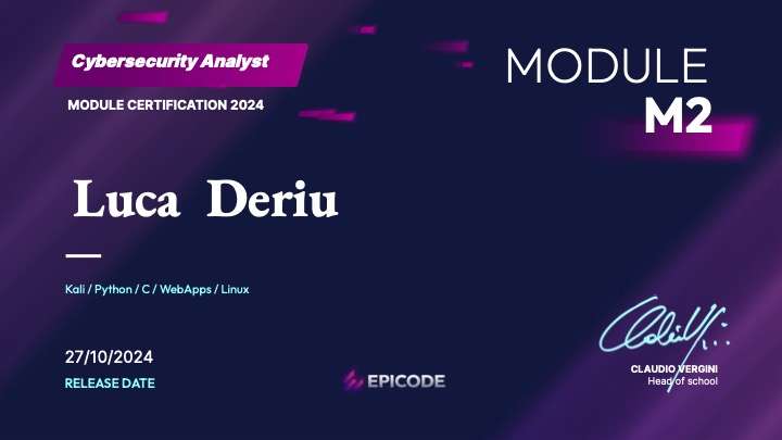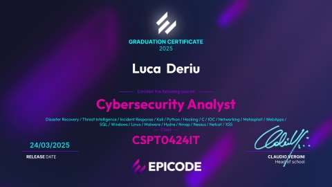 Epicode Cyber Security Analyst Certificazione Cyber Security (6 Mesi di Corso teorico pratico con eseami di Certificazione)