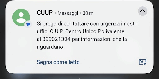 - “La stiamo cercando per una comunicazione urgente del CUP. Chiami il numero 893…”